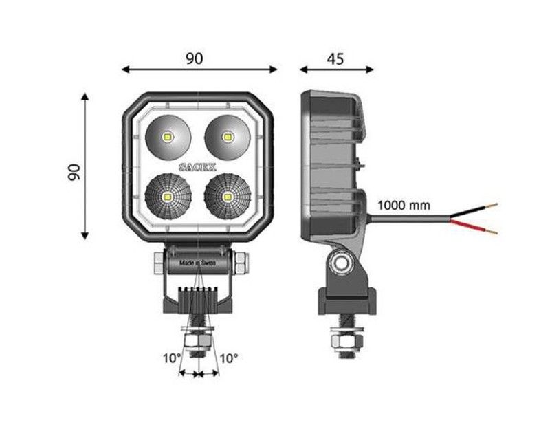 Faro de trabajo cuadrado con 4 LEDS y luz azul