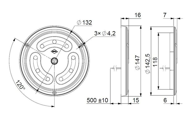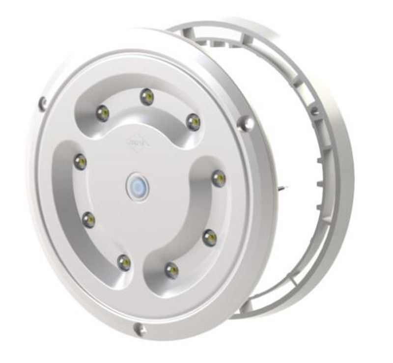 12-24V. De 9 leds. Flujo luminoso de 510/1650 lúmenes. Temperatura del color de 5000 kilogramos. La lámpara tiene un anillo para montarla en una superficie plana. Luces empotrada s en el techo. Con cable de 2x1x0,75mm2 y longitud de 0,5m