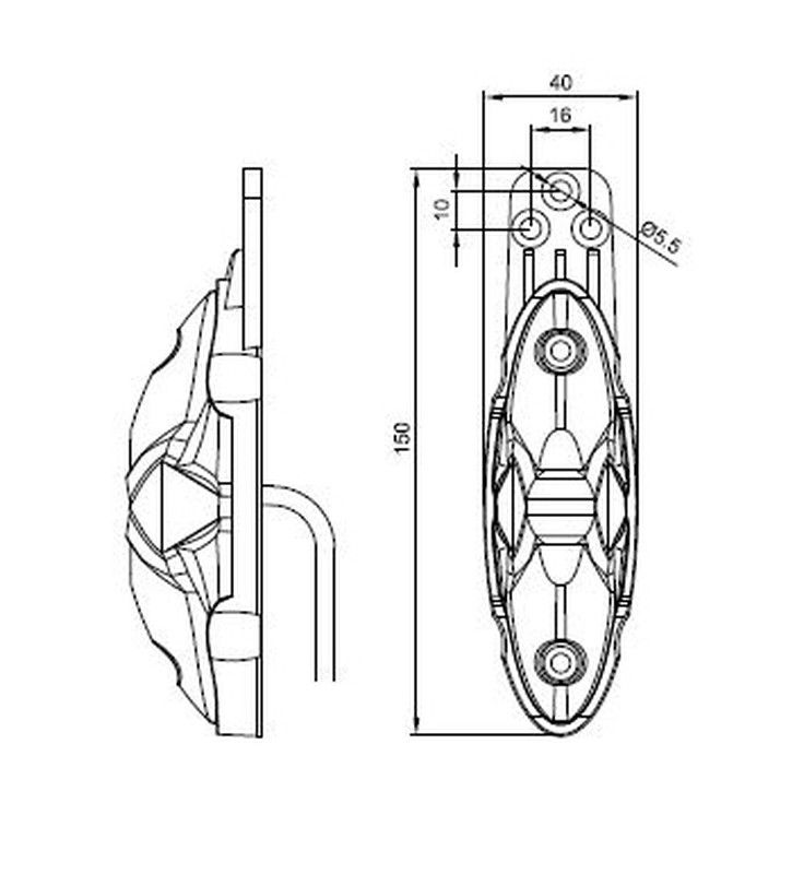 Piloto gálibo LED de 3 funciones con luz de posición delantera, trasera y lateral con soporte recto extendido
