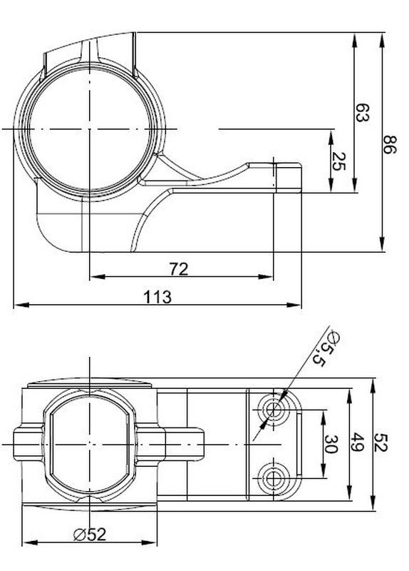 Cuerno gálibo izquierdo corto y colgante, en 12-24V. Con cable de 2x0,75mm2 de 0,5m de longitud y conector QS150