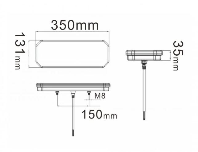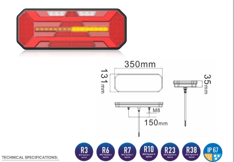 Piloto trasero de 74 leds izquierdo. Funciones: posición, freno, intermitente dinámico, marcha atrás, antiniebla y reflectante. Con cable de 150mm