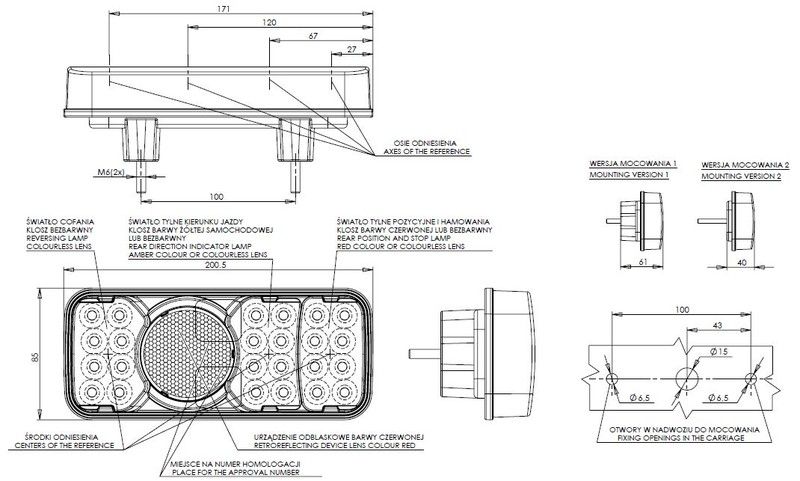 12-24V, derecho, función stop, posición, marcha atrás, reflectante y dirección. Con cable de 190cm y de 5x0,75mm2